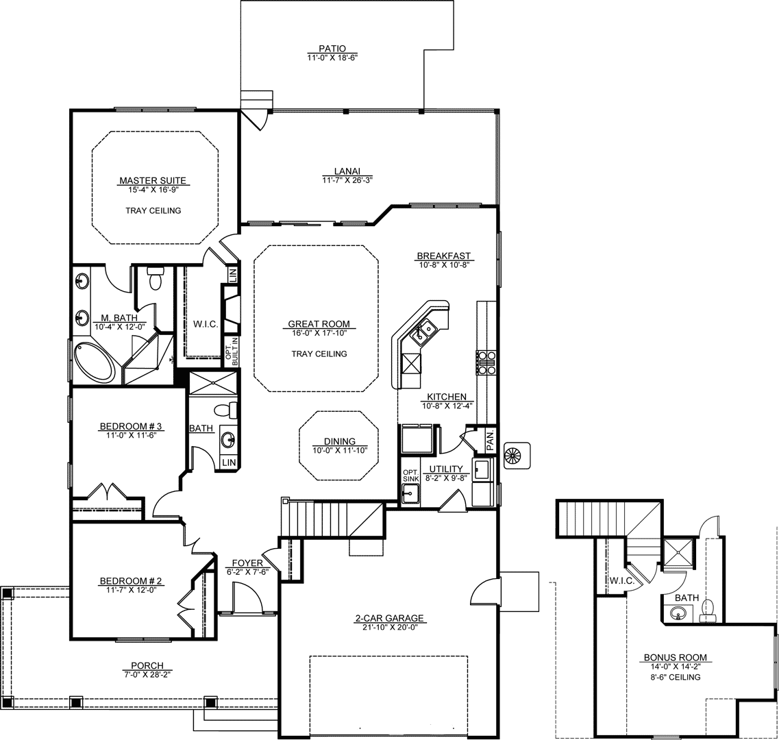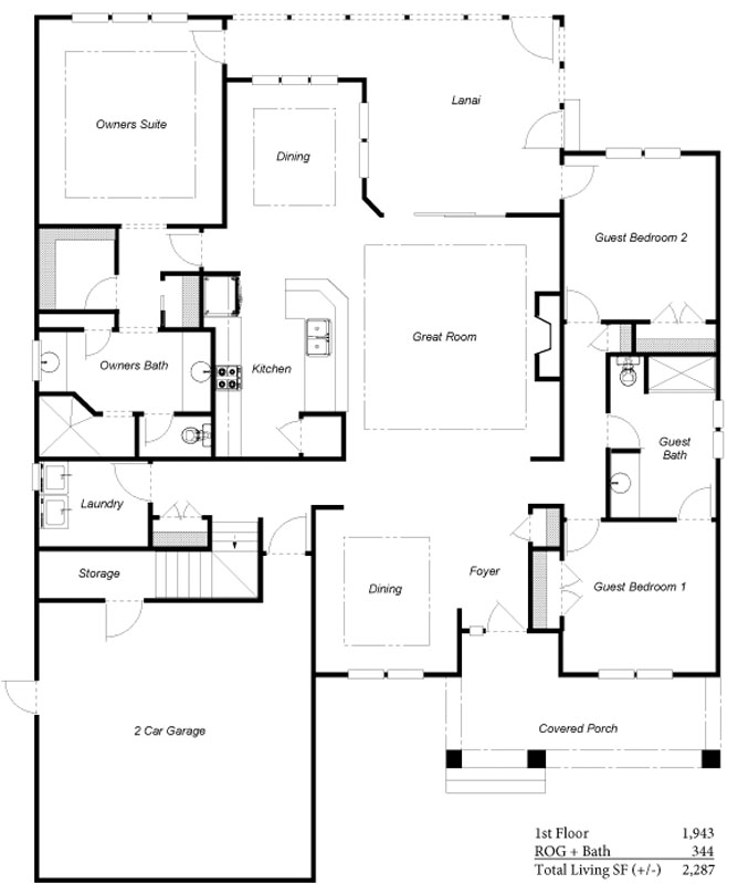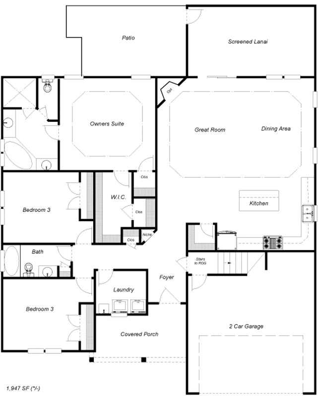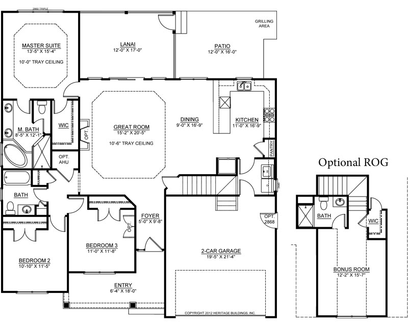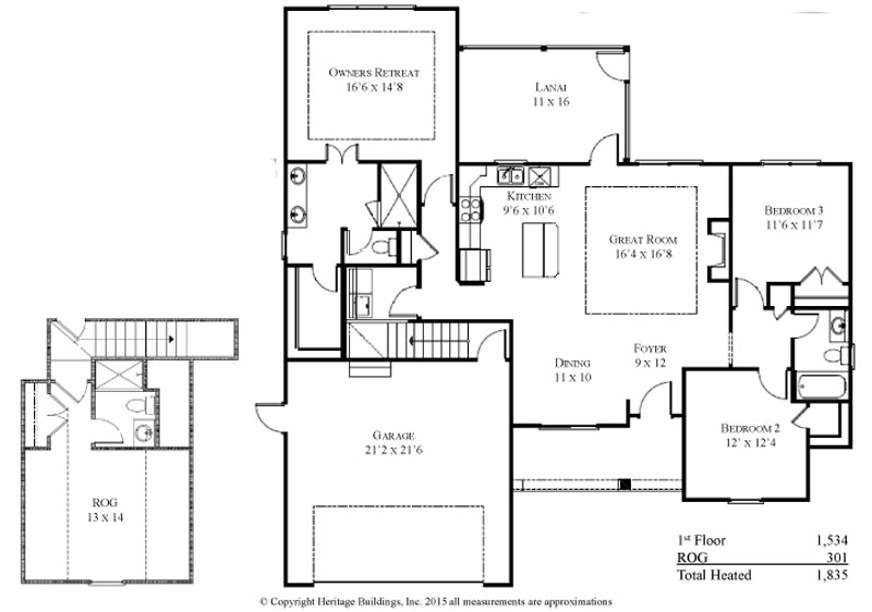 Please contact us with specific criteria, and we will be happy to send you plans that meet your needs. Rooms over garage (ROG), when offered, are optional. In most cases, they have been factored into the total square feet.